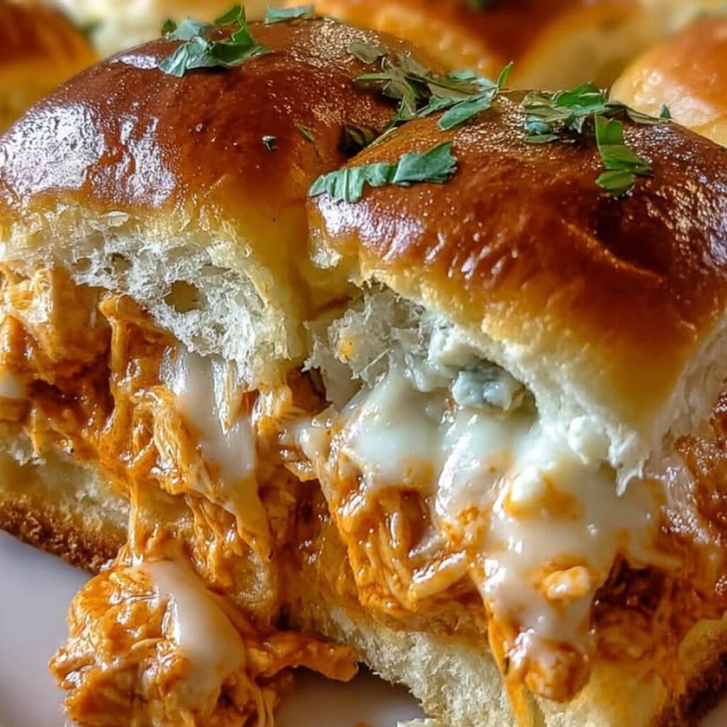 The combination of shredded chicken, cream cheese, buffalo sauce, and melty mozzarella creates a rich filling, while the buttery toasted tops add the perfect finishing touch. Every bite is warm, gooey, and packed with bold flavor.