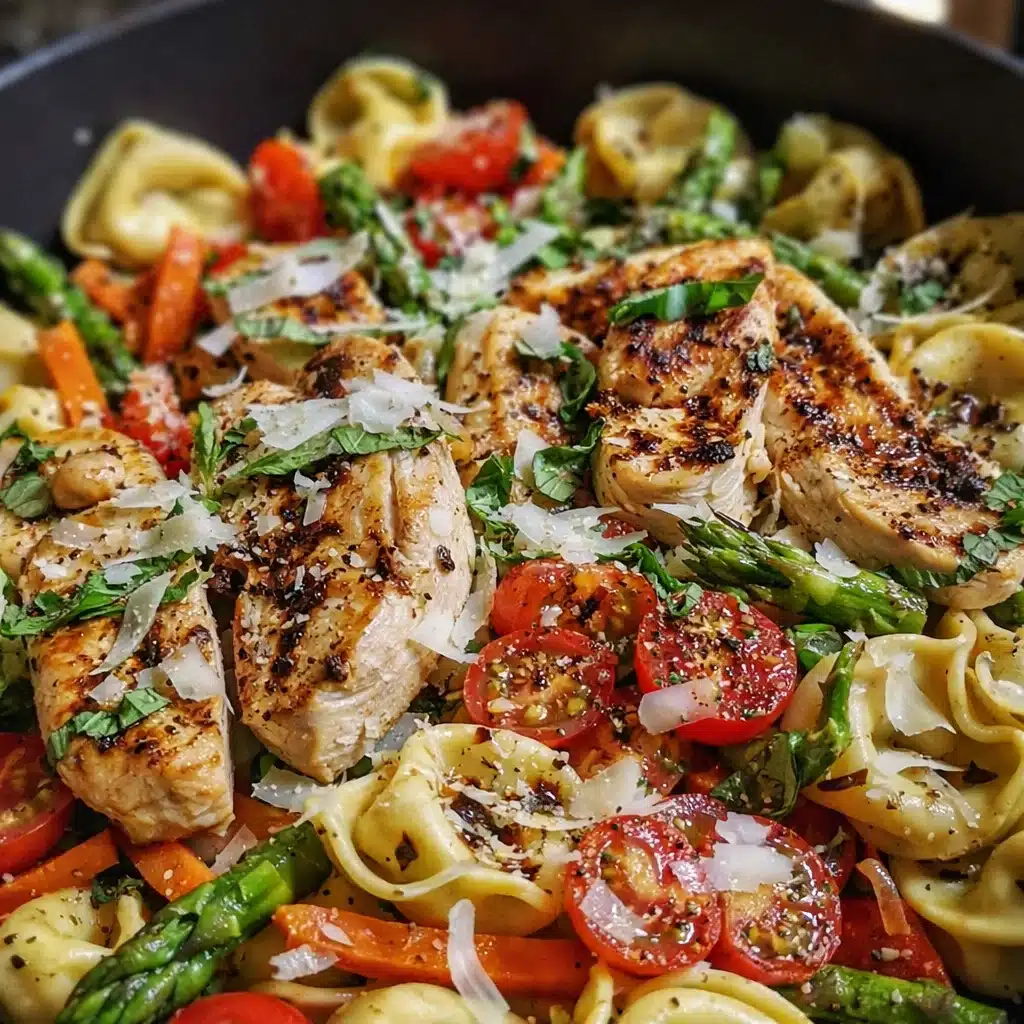 This salad is everything you want in a comforting yet light pasta dish. It has the satisfying bite of cheese-filled tortellini, the protein of juicy chicken breast, and the freshness of asparagus, carrots, and tomatoes. Toss everything in a warm balsamic-honey dressing, and you’ve got a flavor explosion that feels both comforting and gourmet.