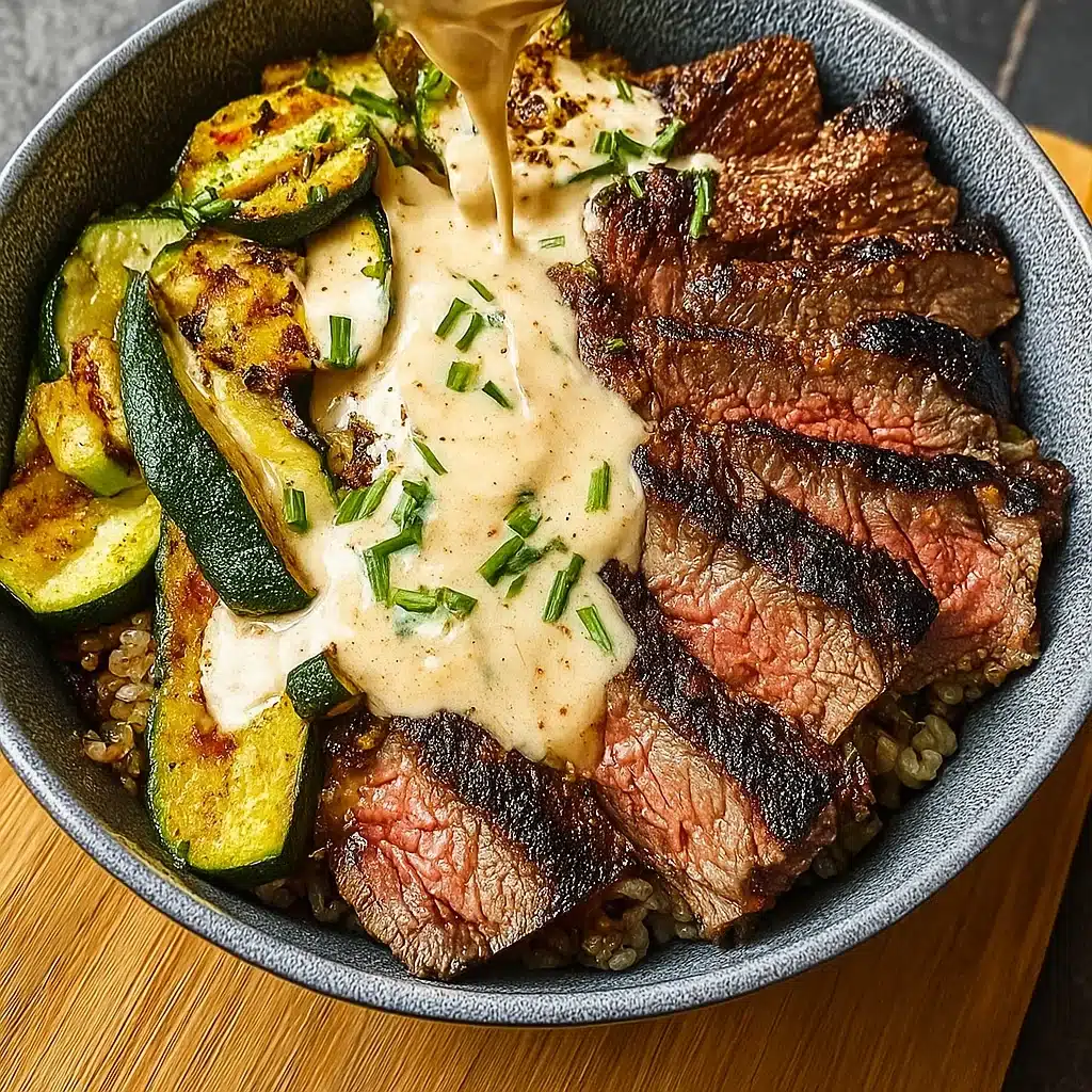 This grilled steak bowl is everything a good dinner should be—simple to make, packed with fresh ingredients, and layered with bold flavors. Juicy, perfectly charred steak pairs beautifully with the light smokiness of grilled zucchini. The creamy herb sauce ties it all together with a tangy, luxurious finish. Whether you’re serving it for a family dinner or meal-prepping for the week, every bite delivers that crave-worthy balance of savory, smoky, and fresh.