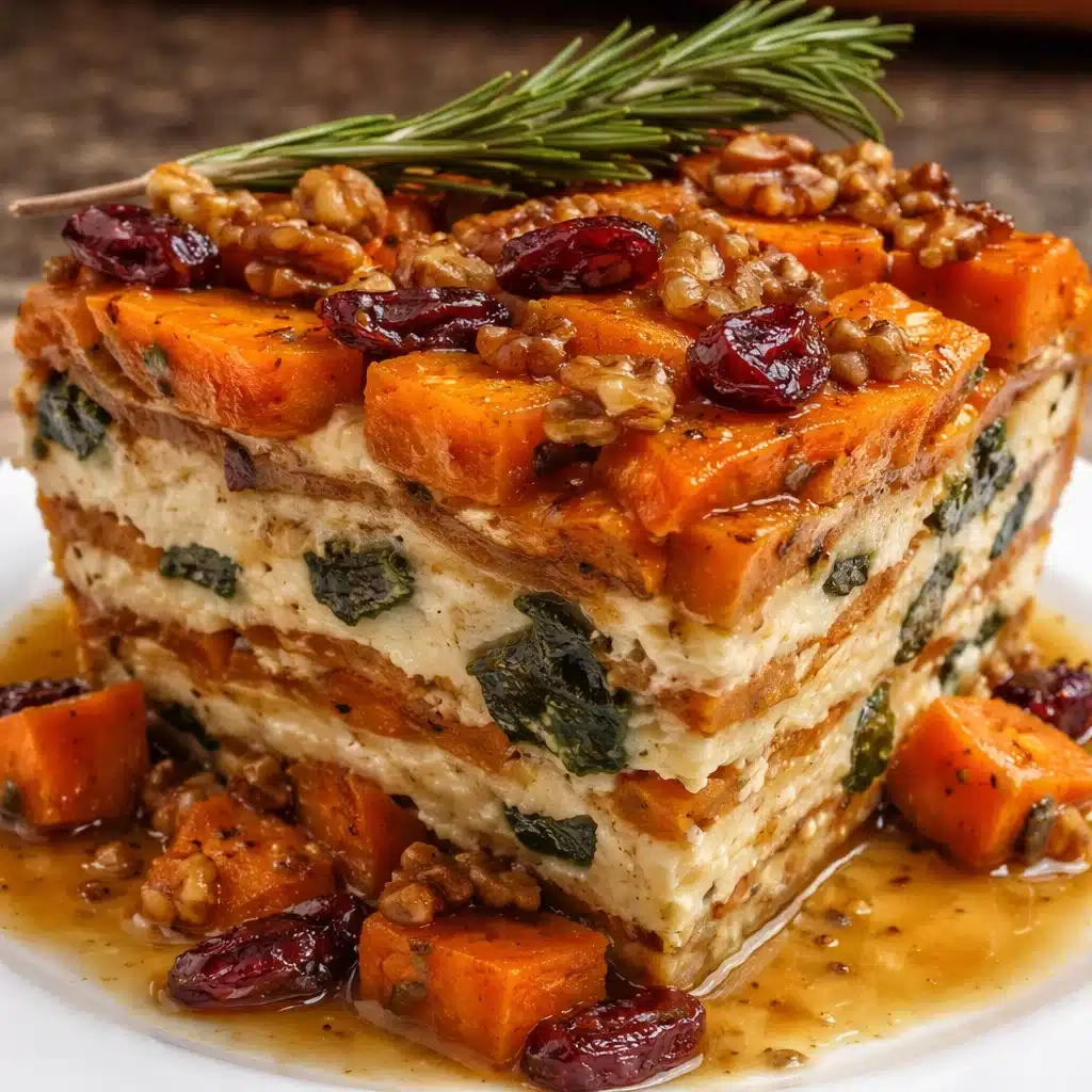 This Layered Sweet Potato Lasagna transforms the classic Italian comfort food into a modern, wholesome dish. Instead of pasta sheets, layers of roasted sweet potatoes, butternut squash, and carrots form the base — delivering a naturally sweet, hearty texture. Balanced with creamy feta cheese, crunchy walnuts, and a tangy cranberry glaze, this lasagna offers vibrant color, superior flavor depth, and excellent nutritional value. It’s a standout vegetarian main course perfect for elegant dinners or healthy family meals.