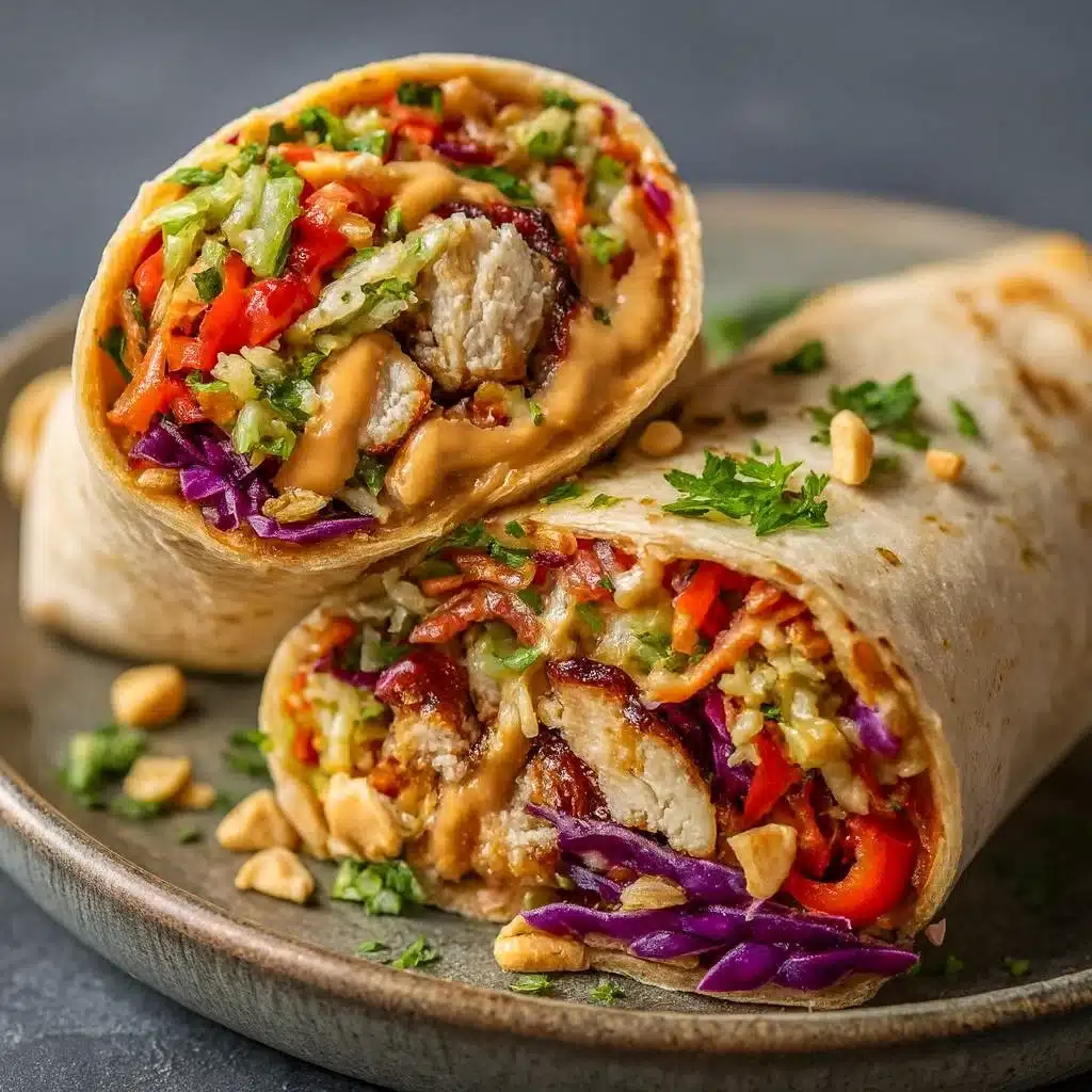 Fresh Thai Chicken Wraps combine tender chicken, crunchy slaw, and a creamy peanut sauce for a quick, flavorful meal.